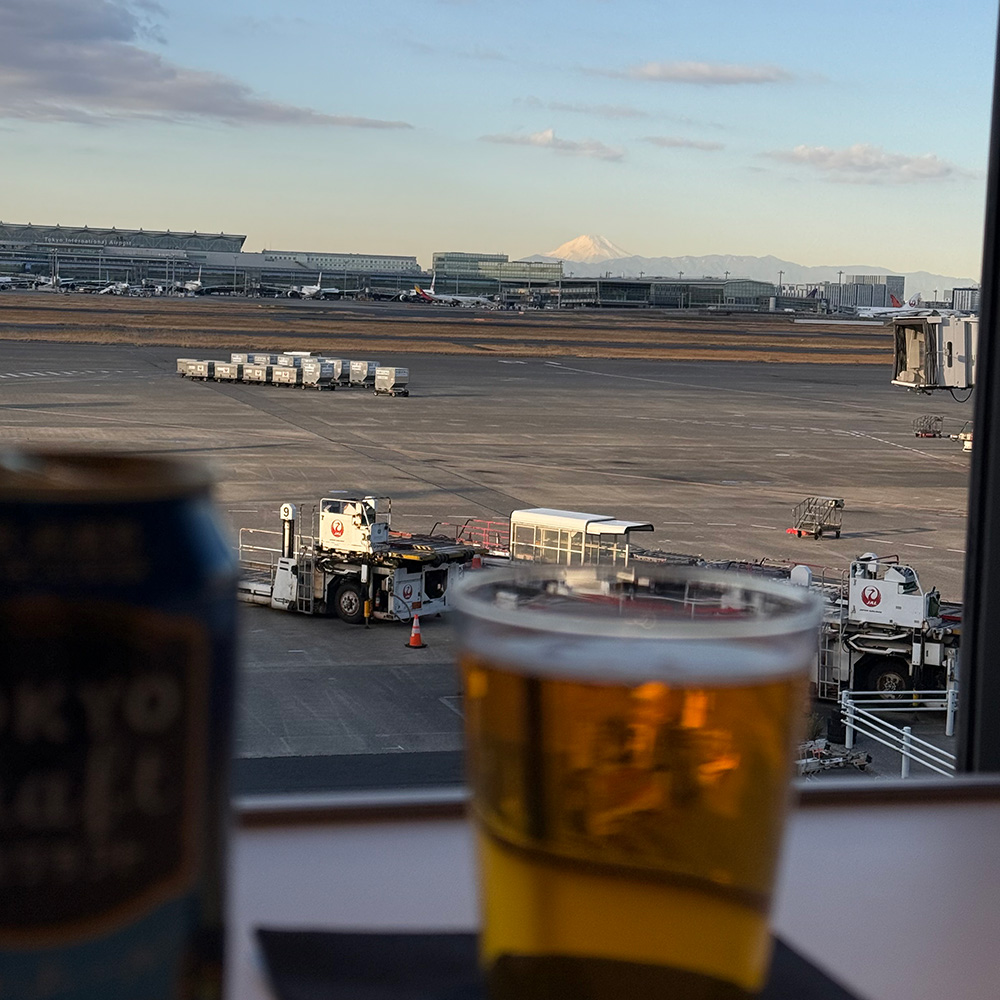 大阪までのフライトまで時間もあるのでパワーラウンジにて富士山を見ながらのお疲れ様ビール。