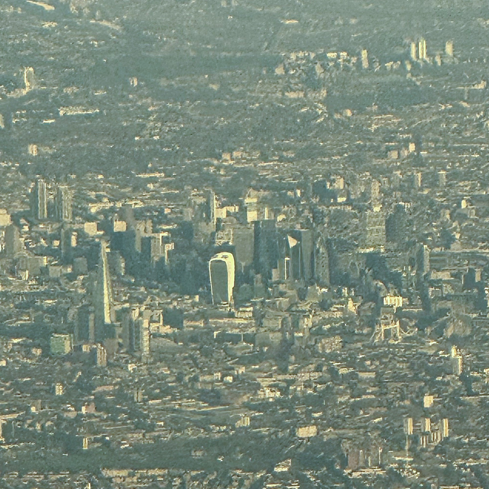 拡大したので粗くなっているのですが、タワーブリッジなのか?そしてザ・シャードなのか?スカイ・ガーデン?なのか?