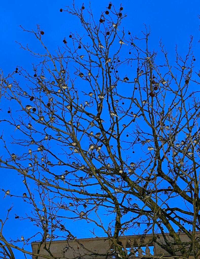 わかりづらいかもしれませんが、枝には鳥たちがびっしり。
