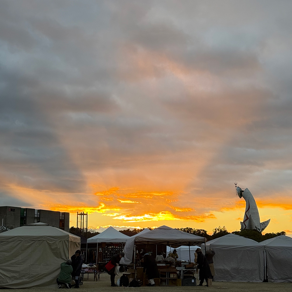 関西蚤の市では、設営日・撤収日を含めた5日間、万博記念公園へ通いました。