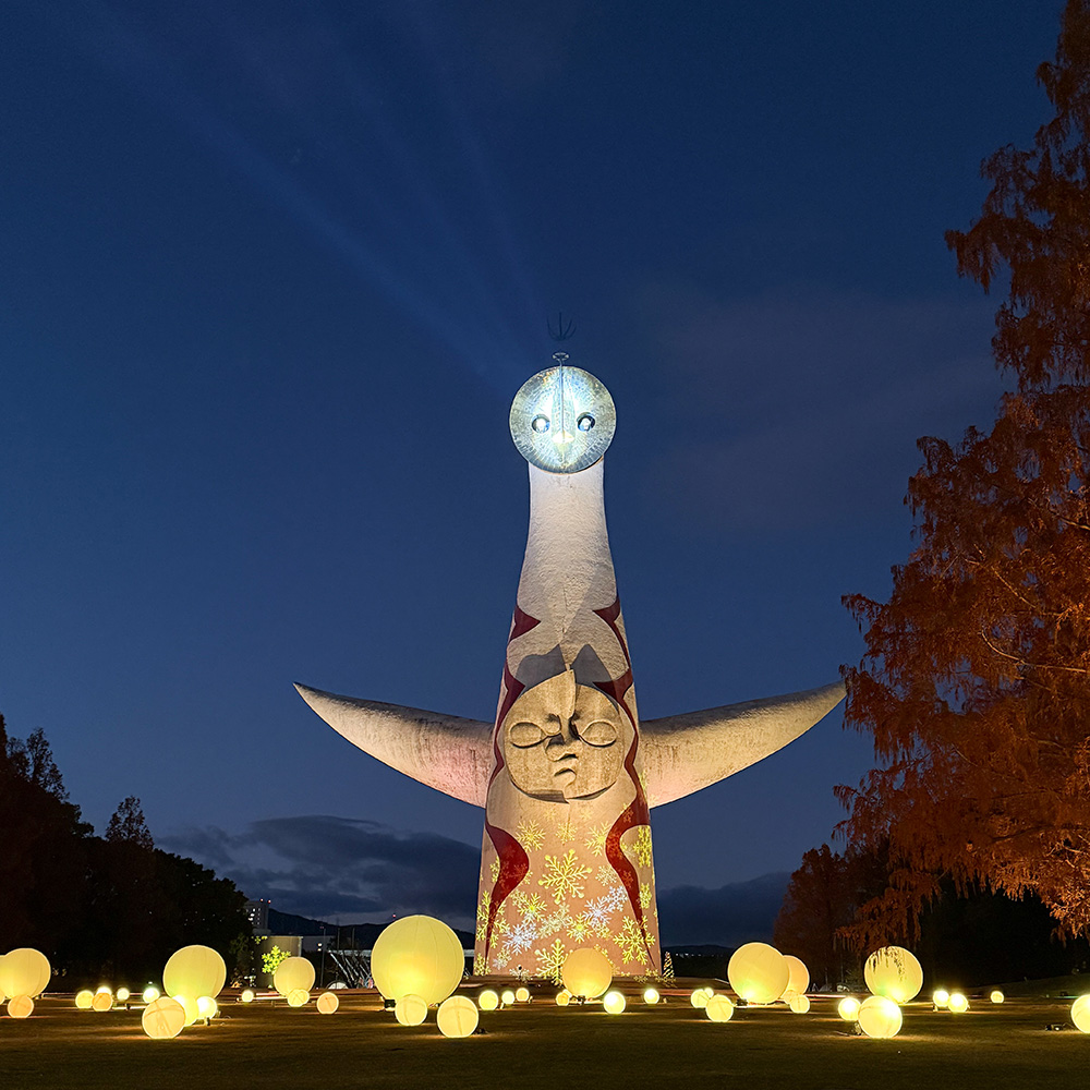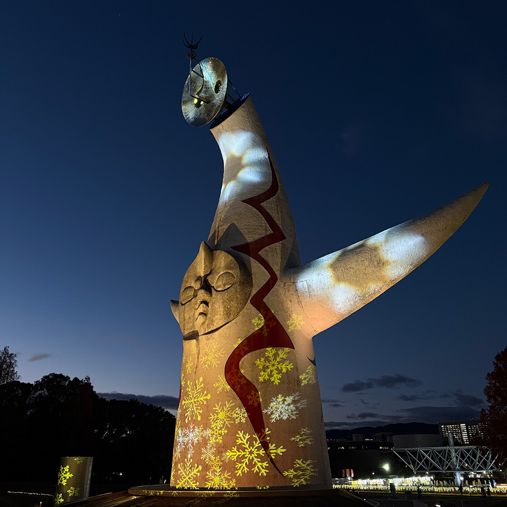 「イルミナイト万博〜2025 WINTER〜」ということで、この日はキラキラにライトアップされた太陽の塔も見てきました。